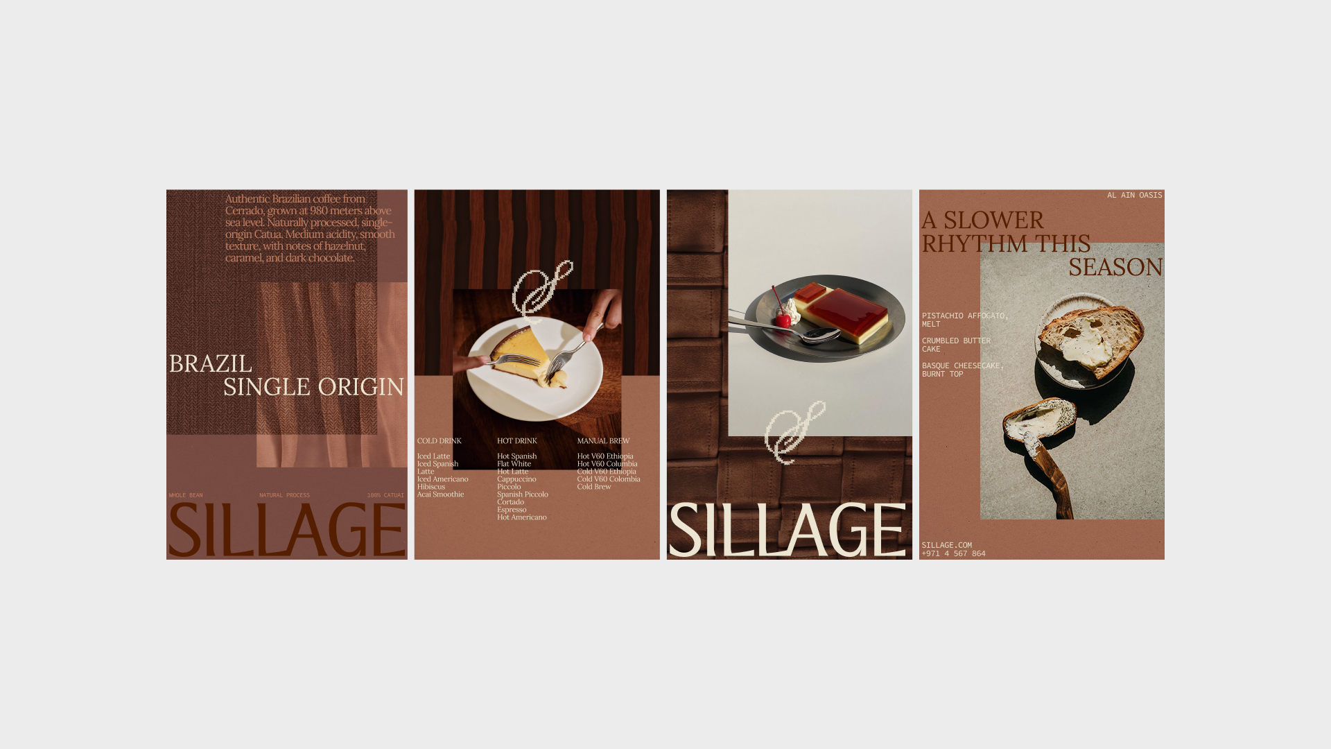 Sillage is a specialty coffee brand located in Al Ain Oasis, a 4,000-year-old UNESCO World Heritage Site. The name comes from perfumery and refers to the trail a scent leaves in space. This idea shaped the brand as an experience focused on presence, slowness, and the senses.