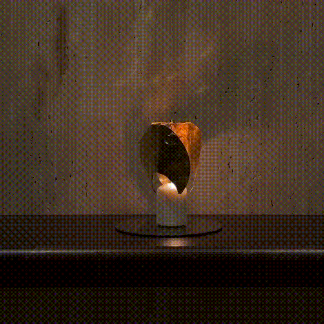 Like subtle jewellery, the candle sets the brass windmill in motion, revealing a rotating moon in an endless eclipse.
